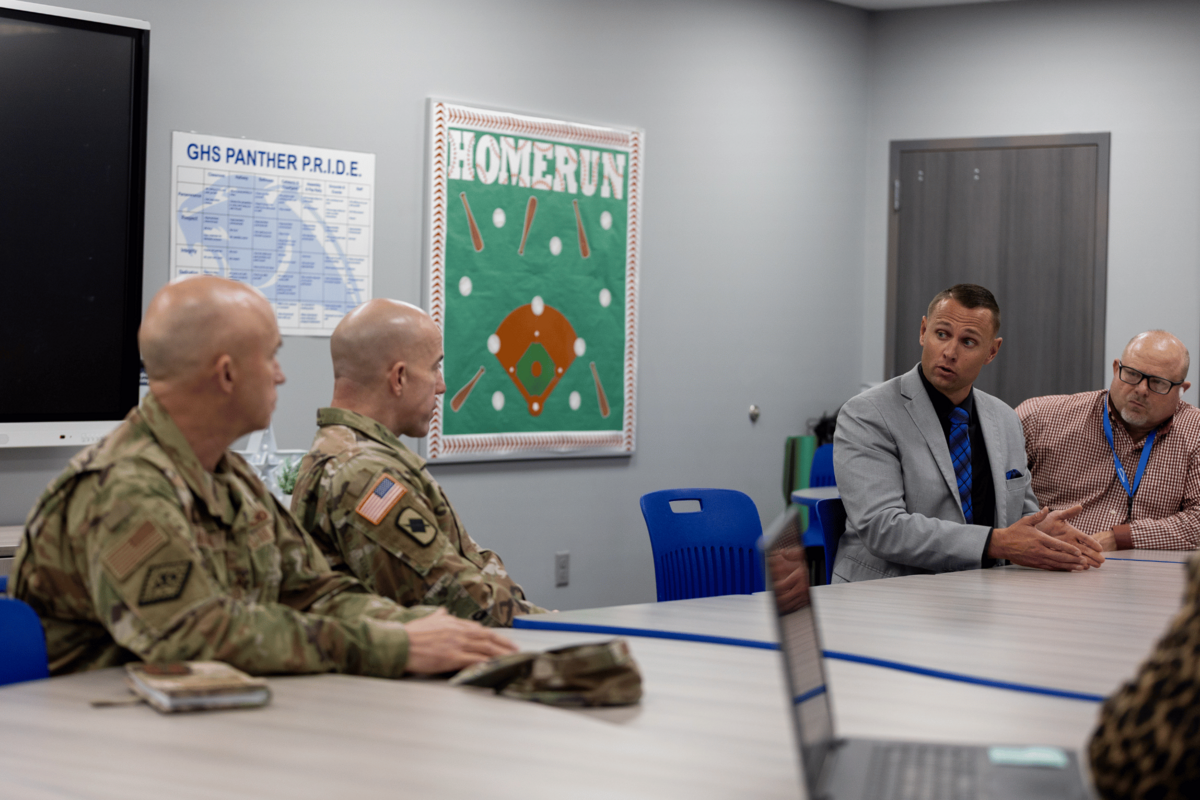 The meeting allowed for representatives to explore opportunities for collaboration between the Arkansas National Guard and Greenbrier School District and to strengthen partnerships between the Arkansas Guard and our school community. Programs and initiatives aligning with the Governor’s Three Es that the National Guard can support (e.g., JROTC, STEM initiatives, mentorship, career pathways) were strong focus areas for the session. Likewise, General Bridges and his team reinforced the Guard’s commitment to community engagement and workforce development in Arkansas.